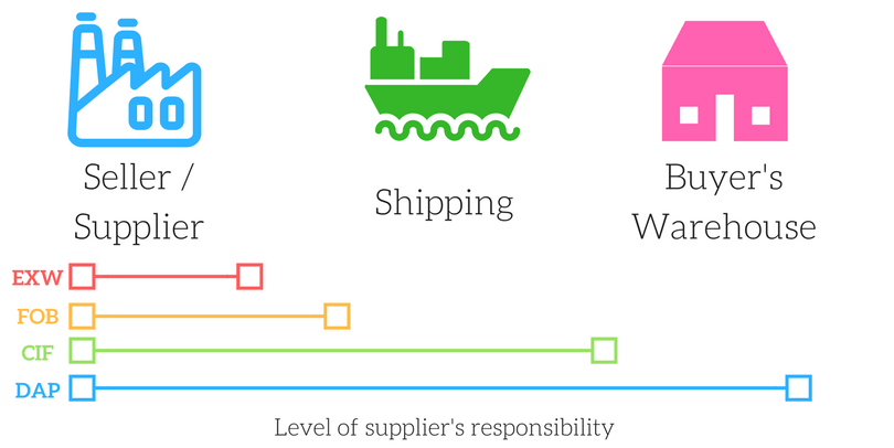 There are four major types of shipping terms that you should know about, also known as incoterms (International Commerce Terms), which set out clear definitions for where the goods are dispatched from, and to :